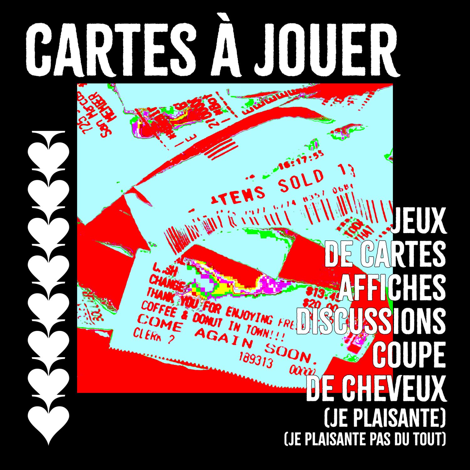 Dans le cadre des galeries d’essai 2025 et de son diplôme voué aux « Cartes à jouer », Judith Combes nous a proposé de jouer politiquement aux cartes et de risquer une petite coupe – métier de coiffeuse qu’elle projette d’exercer après ses études de graphisme.