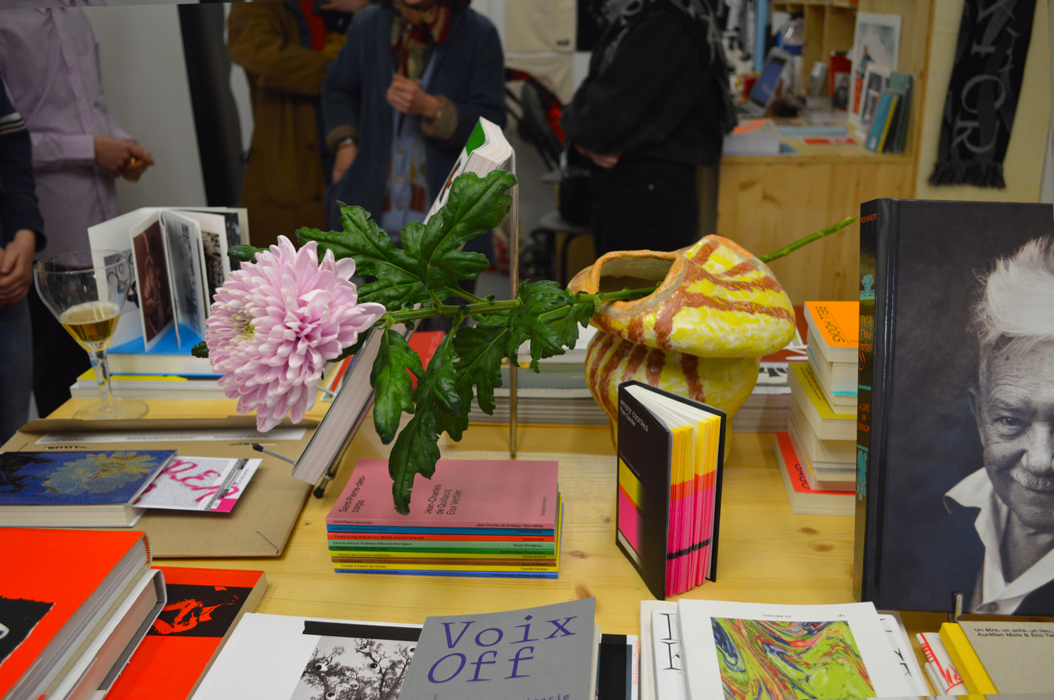 Lorsqu’on pratique le dessin, la couleur et le design graphique et qu’on travaille avec son amie plus intensément impliquée dans la chose artistique, il peut se faire, comme Jean-Philippe Bretin, qu’on hésite à produire sans le cadre d’une médiation, d’un relais, d’une commande. Qu’on mette sa pratique en relais et admiration de la production amie. Qu’on documente photographiquement les céramiques aimées pour en faire des papiers peints décoratifs, des installations, d’étranges agrandissements.