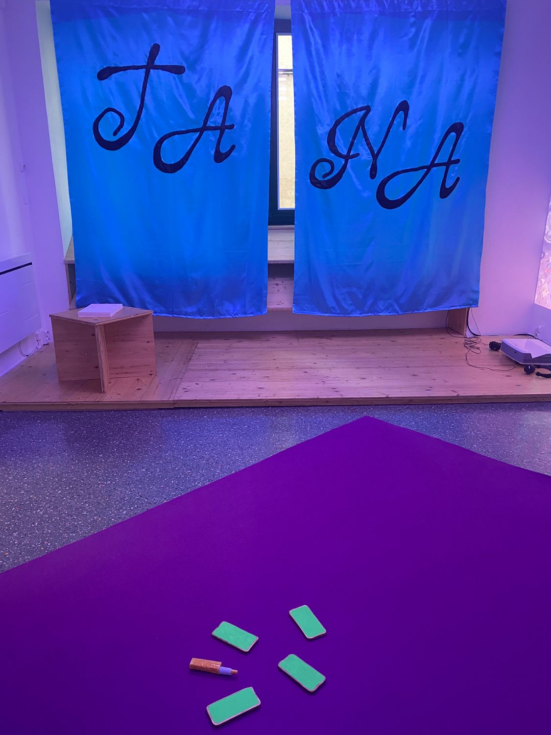 Ce geste de réappropriation, récurrent dans la pratique d’Auriane, interroge les mécanismes d’assignation et de définition imposés par une société patriarcale, et invite à une appréhension du langage, plus libre, plus inclusive et résolument ludique. Avec humour et poésie, Tanaland réaffirme la puissance de la parole, non plus comme un instrument d’oppression, mais comme un acte de revendication et de transformation collective. Il ne s'agit pas seulement de briser le stigmate, mais de se tenir debout, ensemble, face à une langue et à un monde qui cherchent à nous diminuer.
